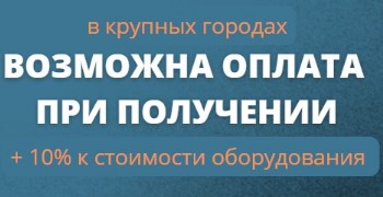 Оплата при получении возможна только в городах присутствия терминалов транспортной компании DPD в областных центрах и крупных городах. Обращаем внимание, что стоимость оборудования при данном способе доставки будет выше на 10%